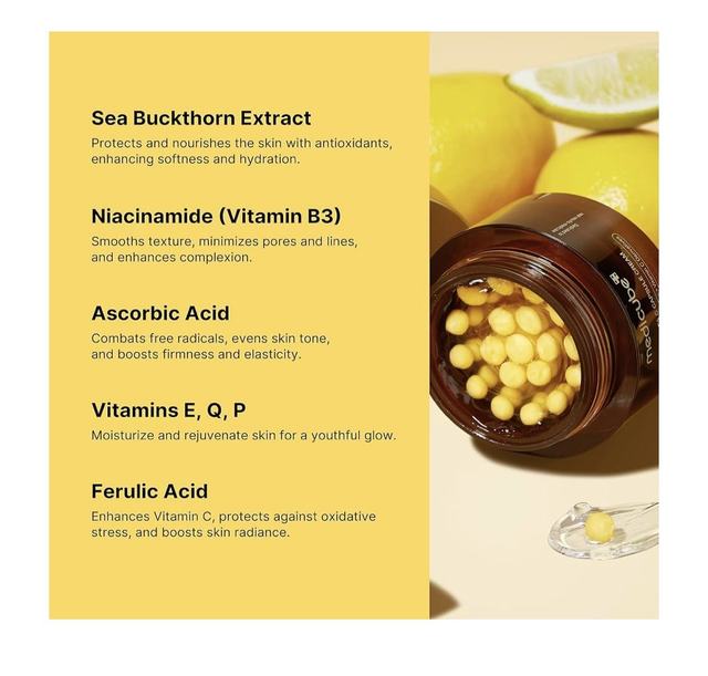 Achieve a radiant, glowing complexion with Medicube's Deep Vita C Capsule Cream. Infused with five vitamin C derivatives and 500,000ppm of vitamin tree water, this cream minimises pigmentation, dark spots, and nourishes the skin's moisture barrier for firmer results. The Mark-Blast Mix technology allows for customisable use, tailoring the capsule-to-gel ratio to your preference.